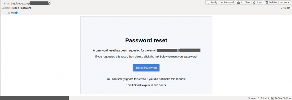 When the blue ‘Reset Password’ button is clicked, the following link opens in the browser: