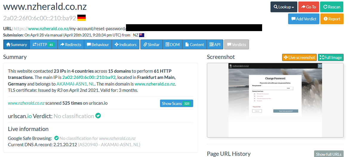 Here is another example where a password reset link has been made available for anyone to use, using an adapted search filter from above: page.domain:“nz” AND page.url:“reset”.